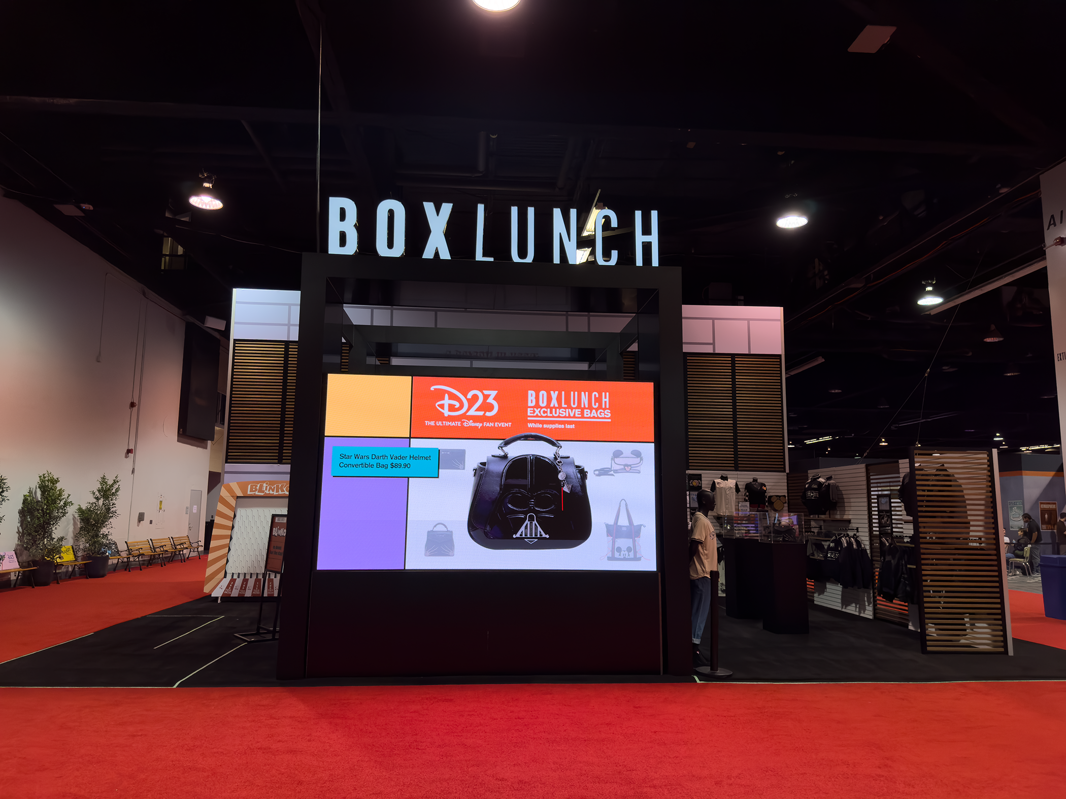 Box Lunch, the pop culture one-stop shop for merchandise and apparel, partnered with Promo360 to create a show-stopping booth at D23 Expo in Anaheim that would showcase their unique Disney licenses and attract attendees from across the floor. Taking inspiration from BoxLunch's traditional retail store façade, Promo360 designed an impressive 13' arch structure featuring flexible retail displays, a 10' x 8' LED video wall, an interactive Plinko game with prizes, 2-level storage, and a massive footprint that allowed BoxLunch to stand out from the crowd of exhibitors by presenting an elegant and elevated consumer experience.