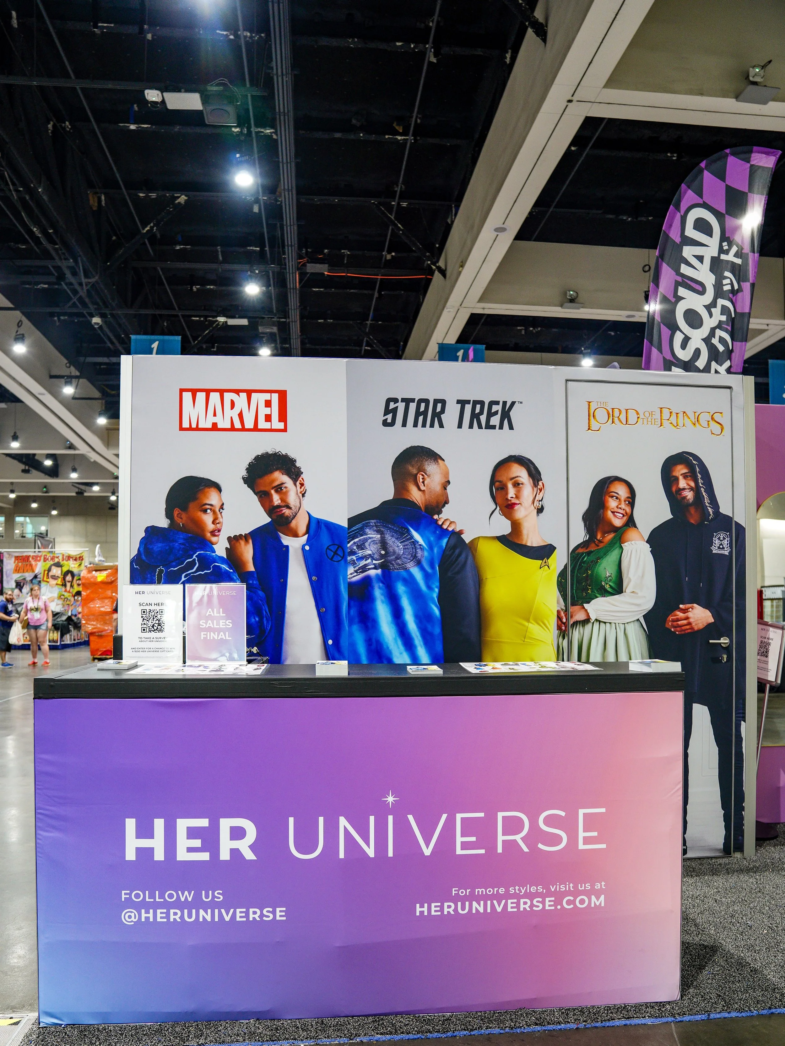 Her Universe asked us to take (2) 10’x20’ spaces at SDCC and make it a seamless Barbie/Her Universe experience… on a budget and with 4 weeks until show open! We worked with their amazing team to reimagine what they had in their minds, and took it to another level. They loved it so much, they hired us for D23 Expo - where founder of the brand Ashley Eckstein appeared at the booth and absolutely loved the design. We were fortunate enough to find a space at NYCC 2024 for them for another reimagining of their designs.